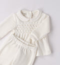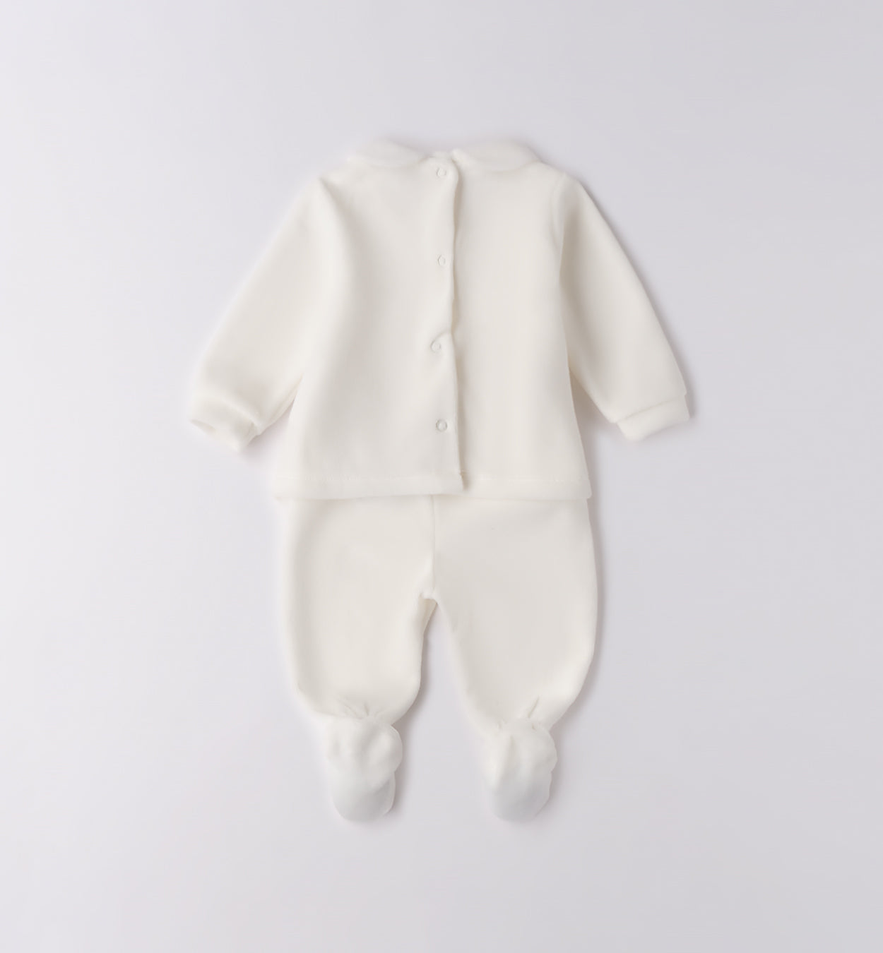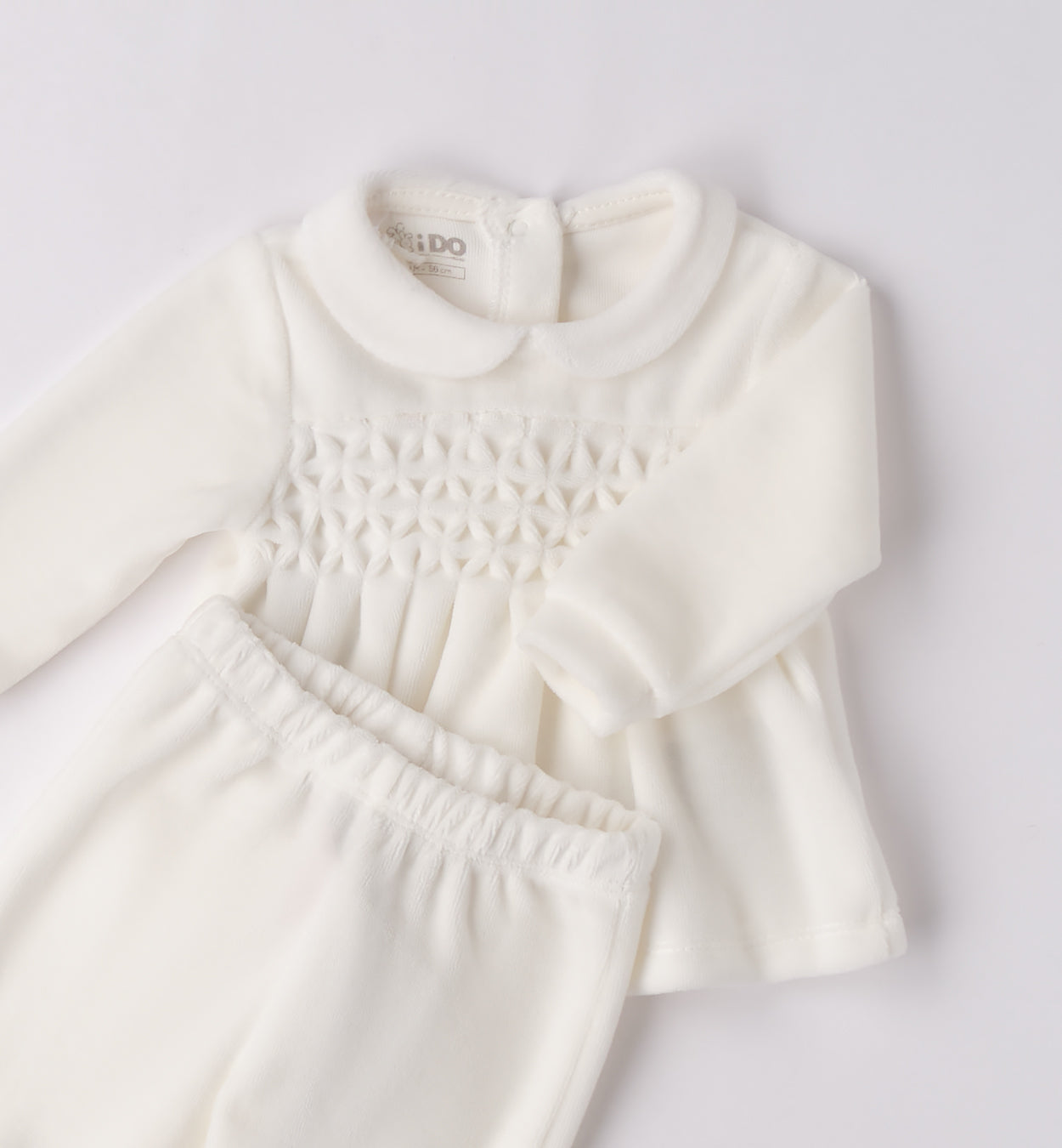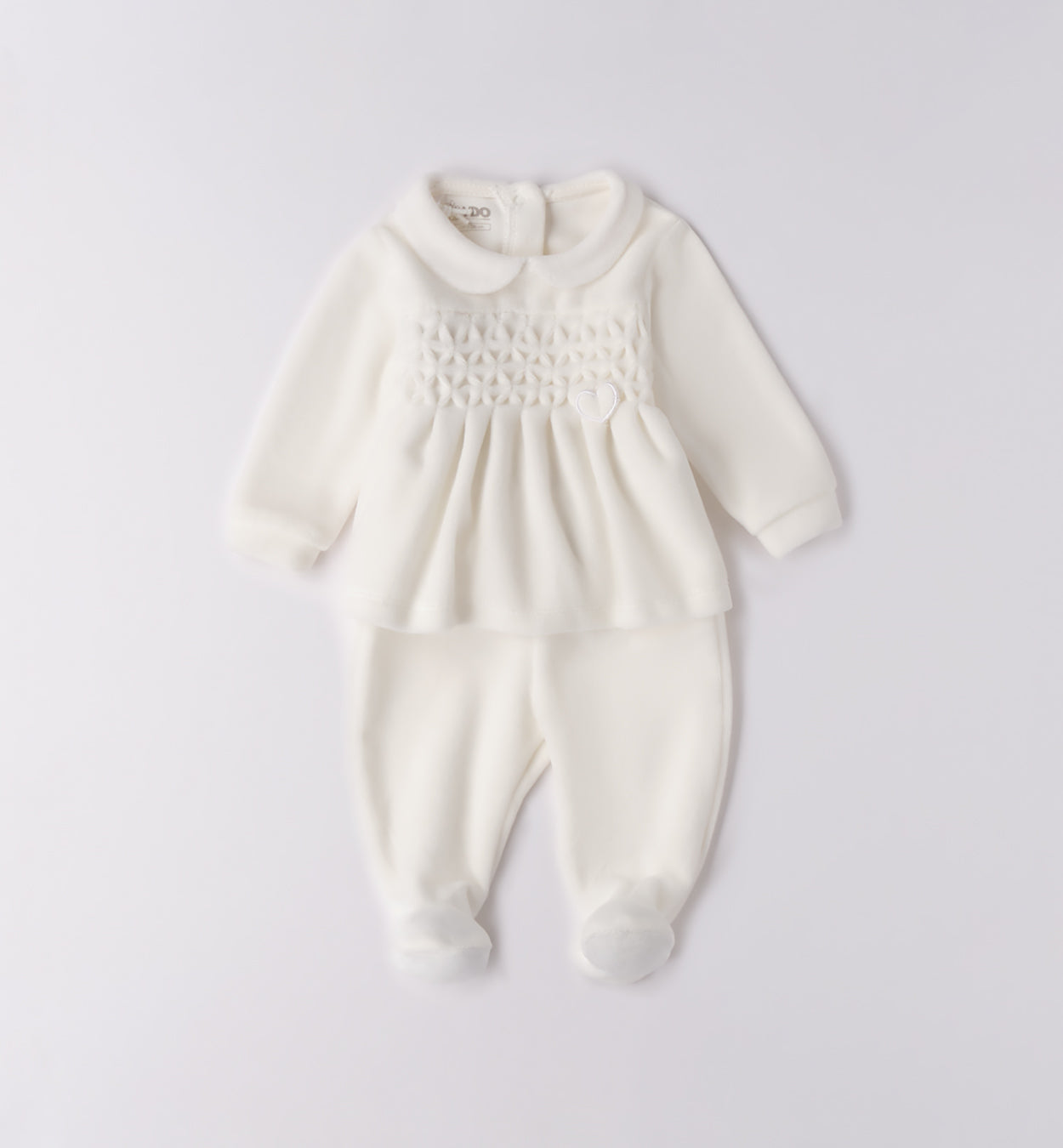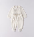 Tutina panna in ciniglia neonata con lavorazione a nido d’ape