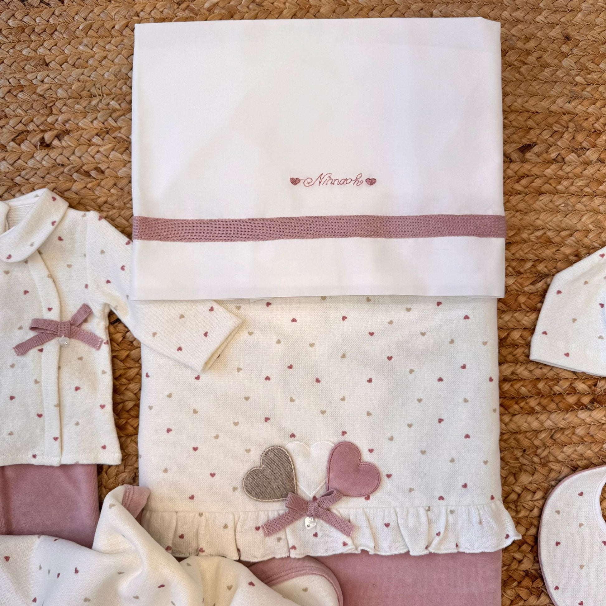 Set nascita ideale per le mamme che cercano un corredino elegante, pratico e prezioso.