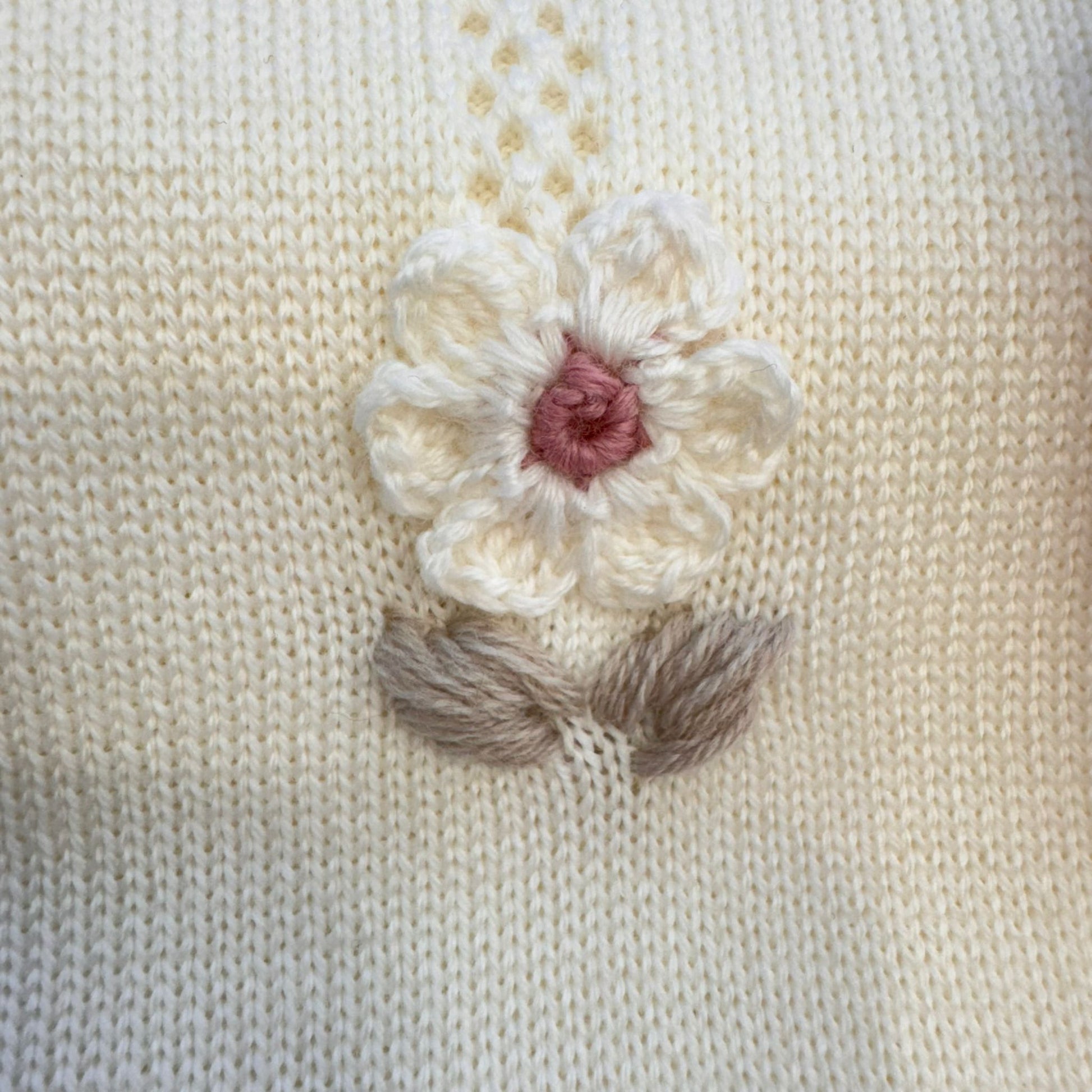 Uscita clinica neonata in pura lana con ricami floreali a rilievo