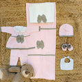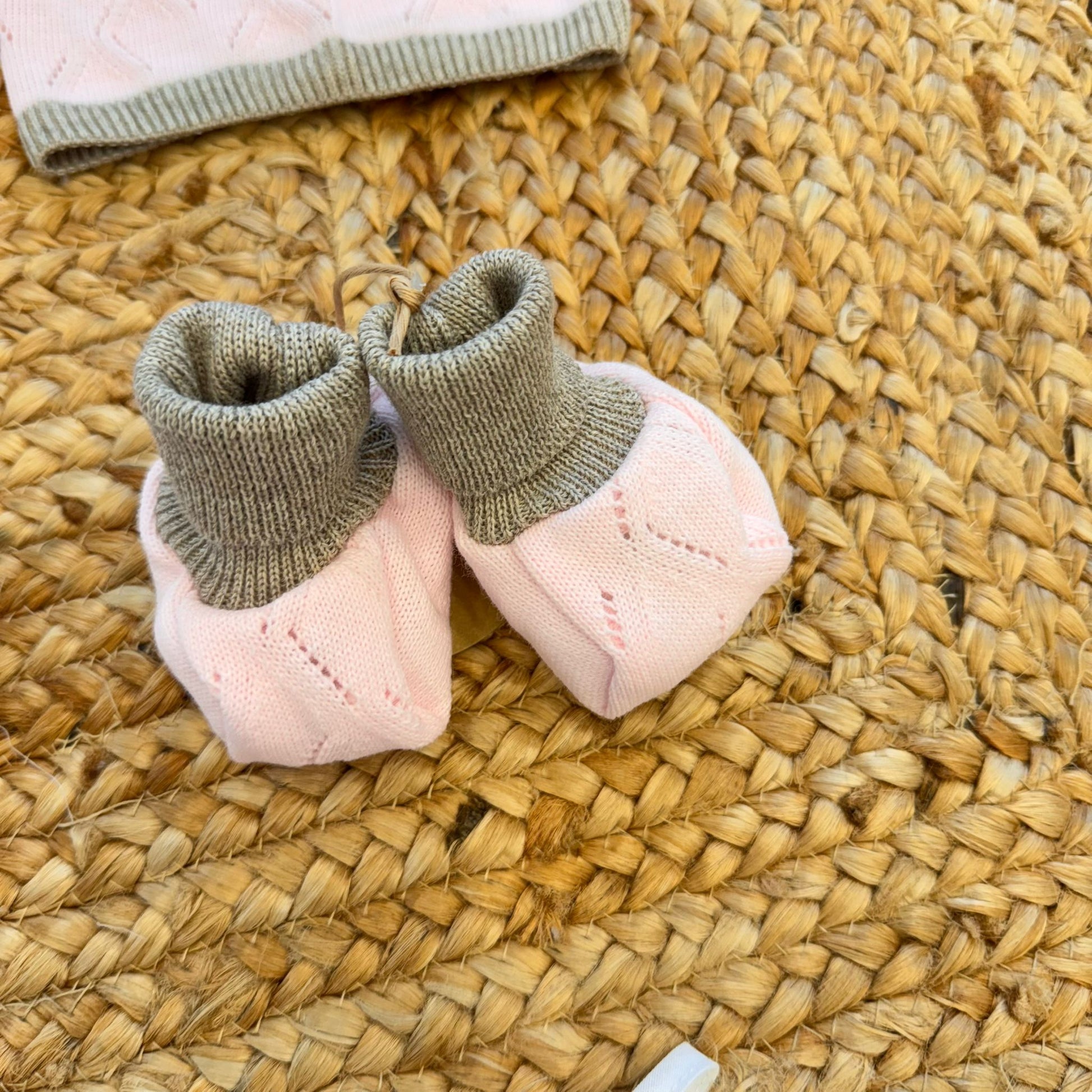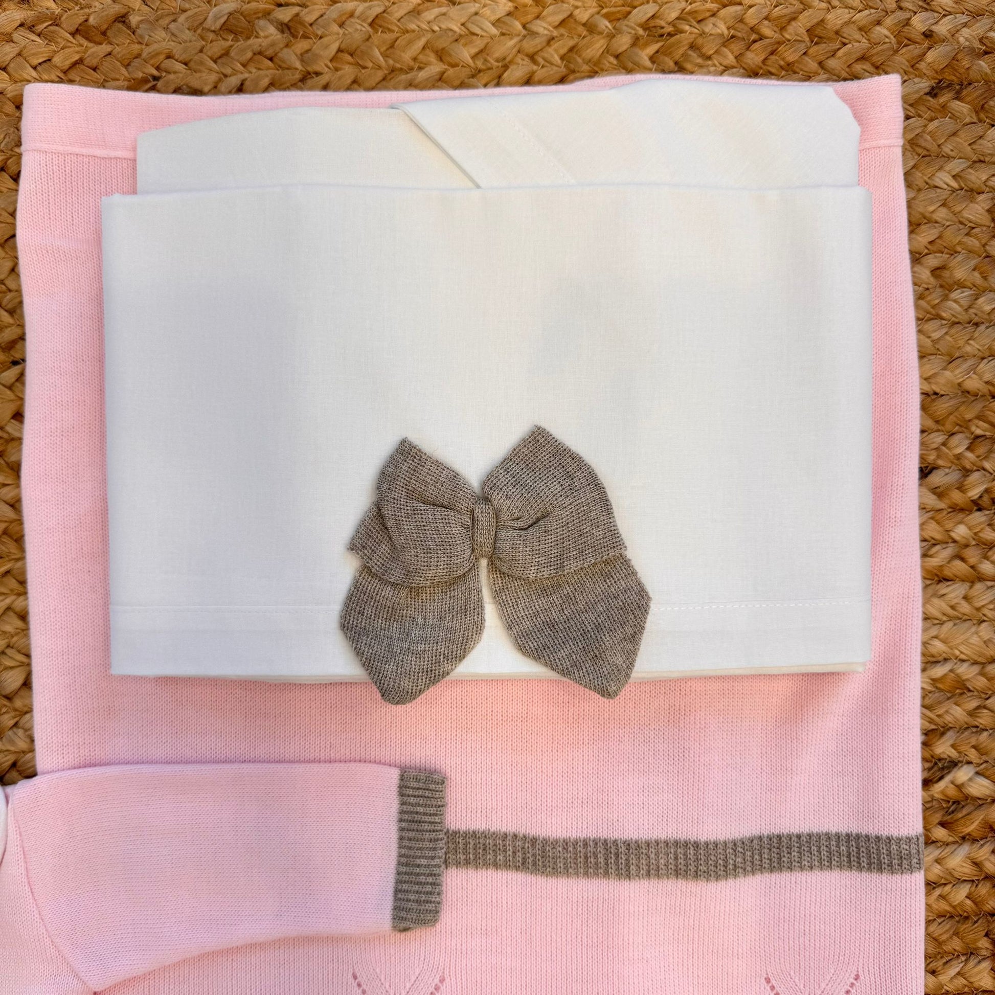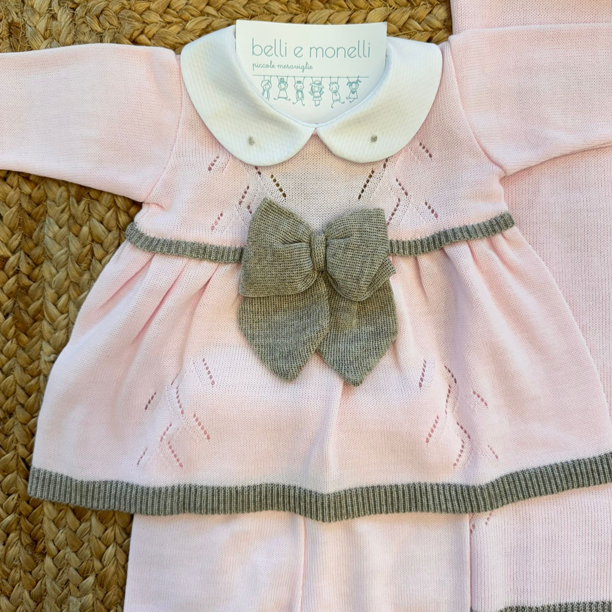 Uscita clinica neonata misto lana rosa con fiocco tortora