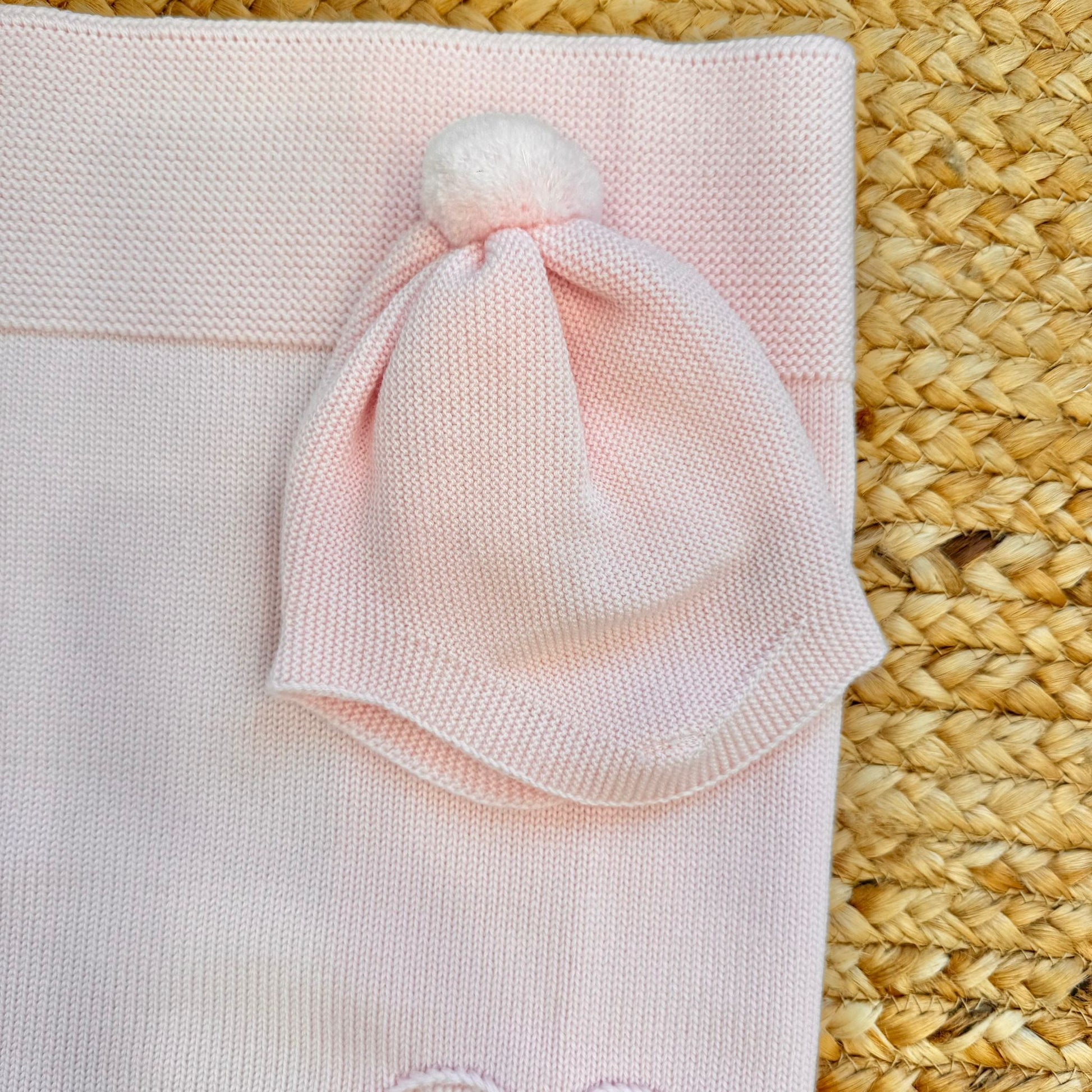 Coordinato uscita clinica neonata pura lana rosa con copertina