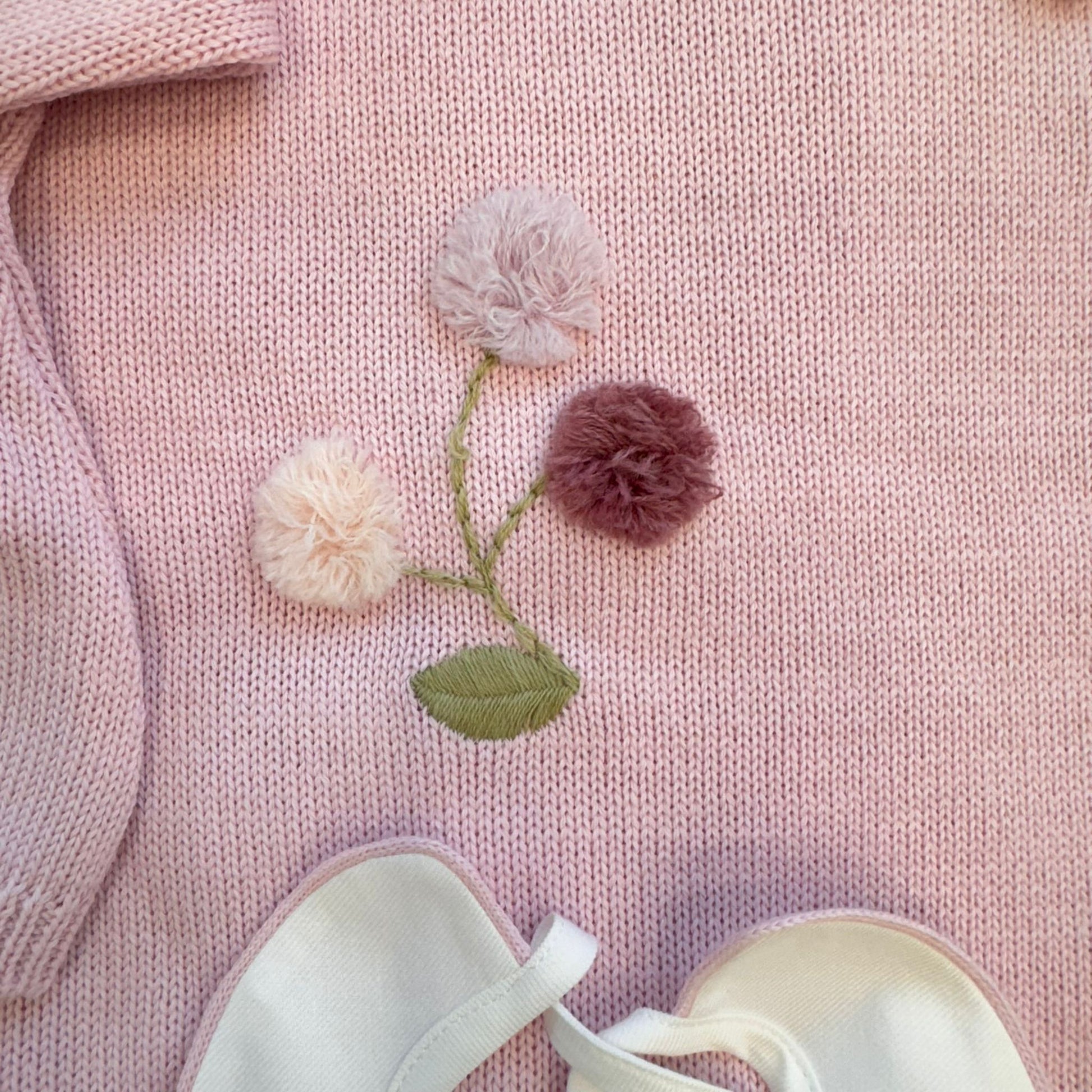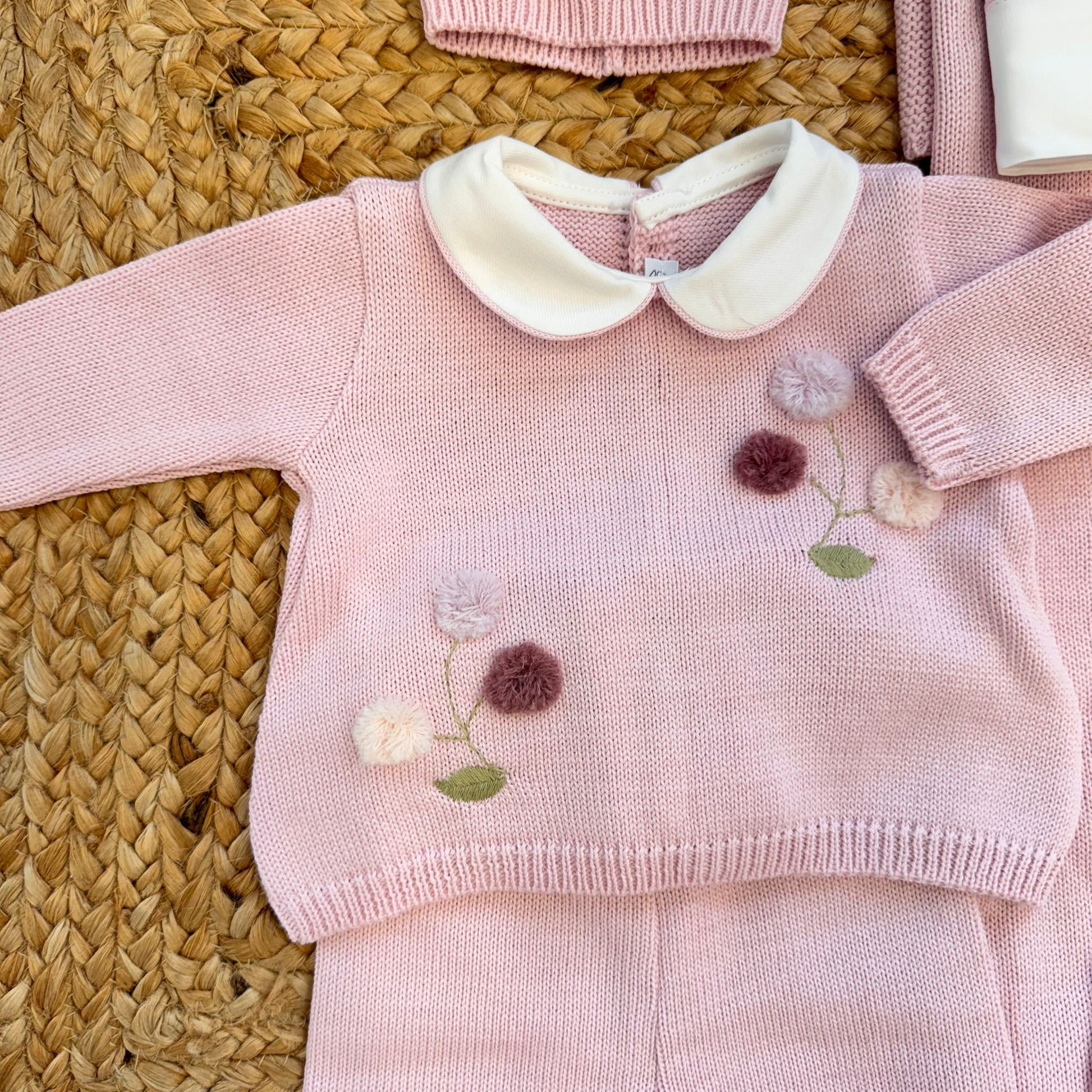Set nascita neonata rosa misto lana con ricamo fiori