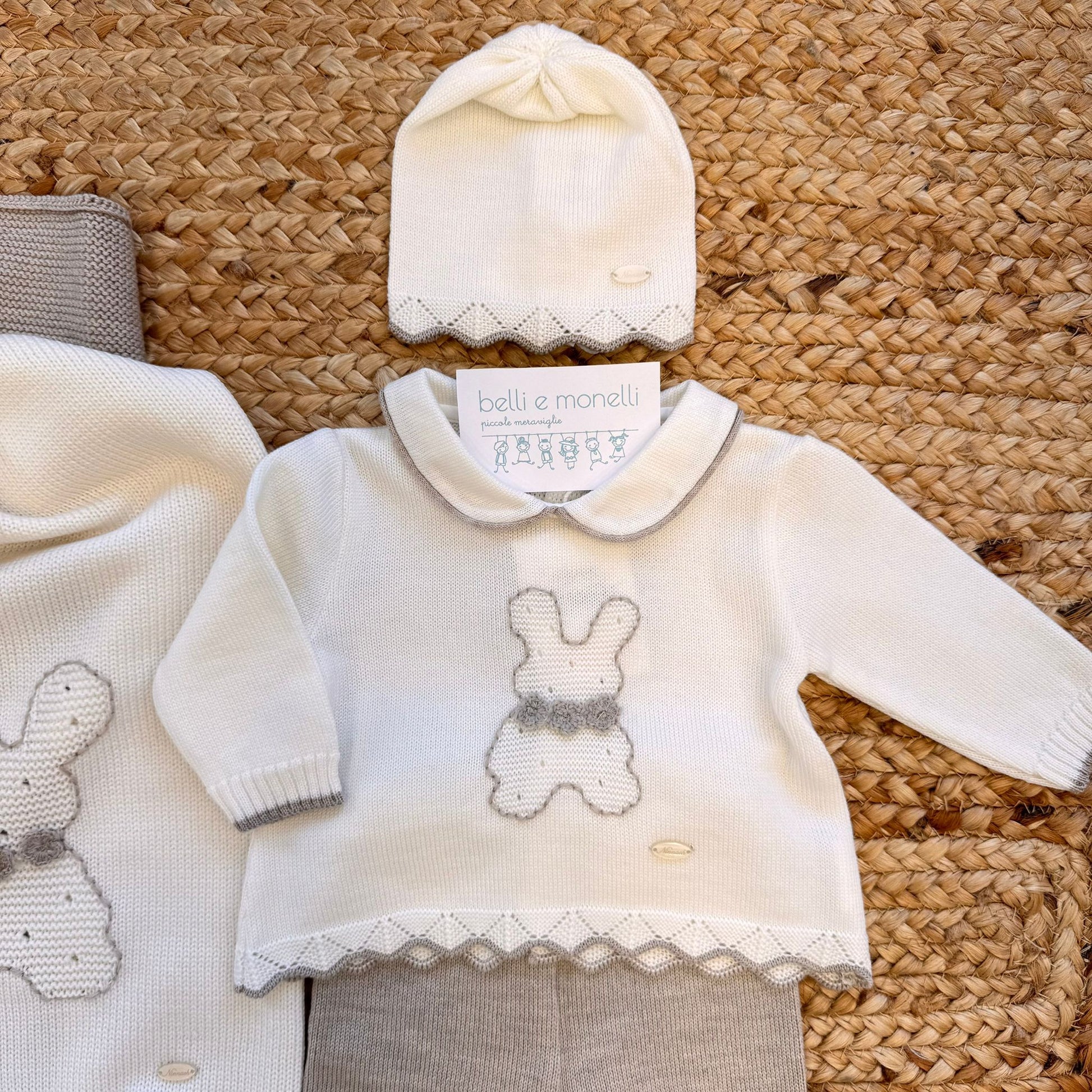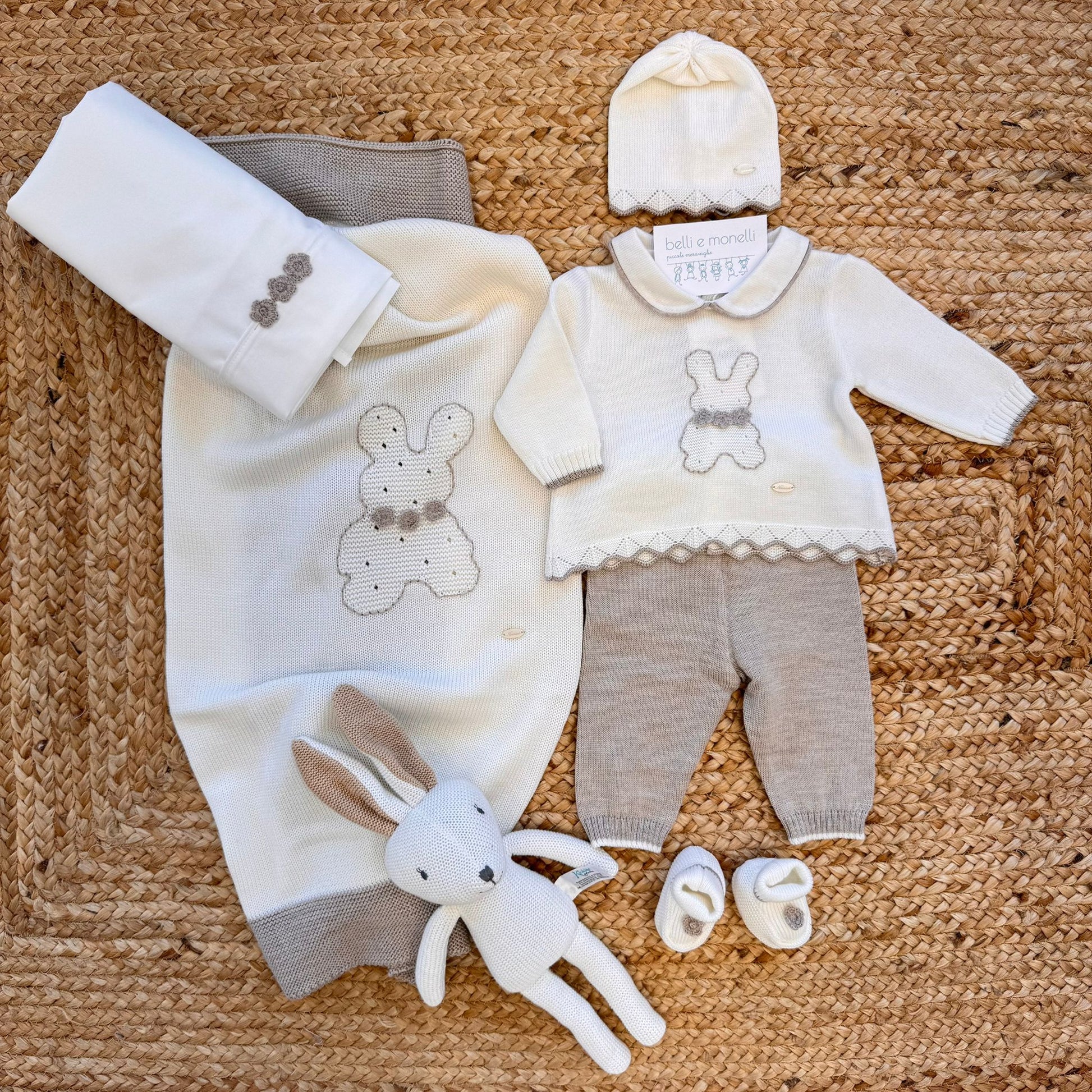 Uscita clinica pura lana con coniglietto panna e tortora