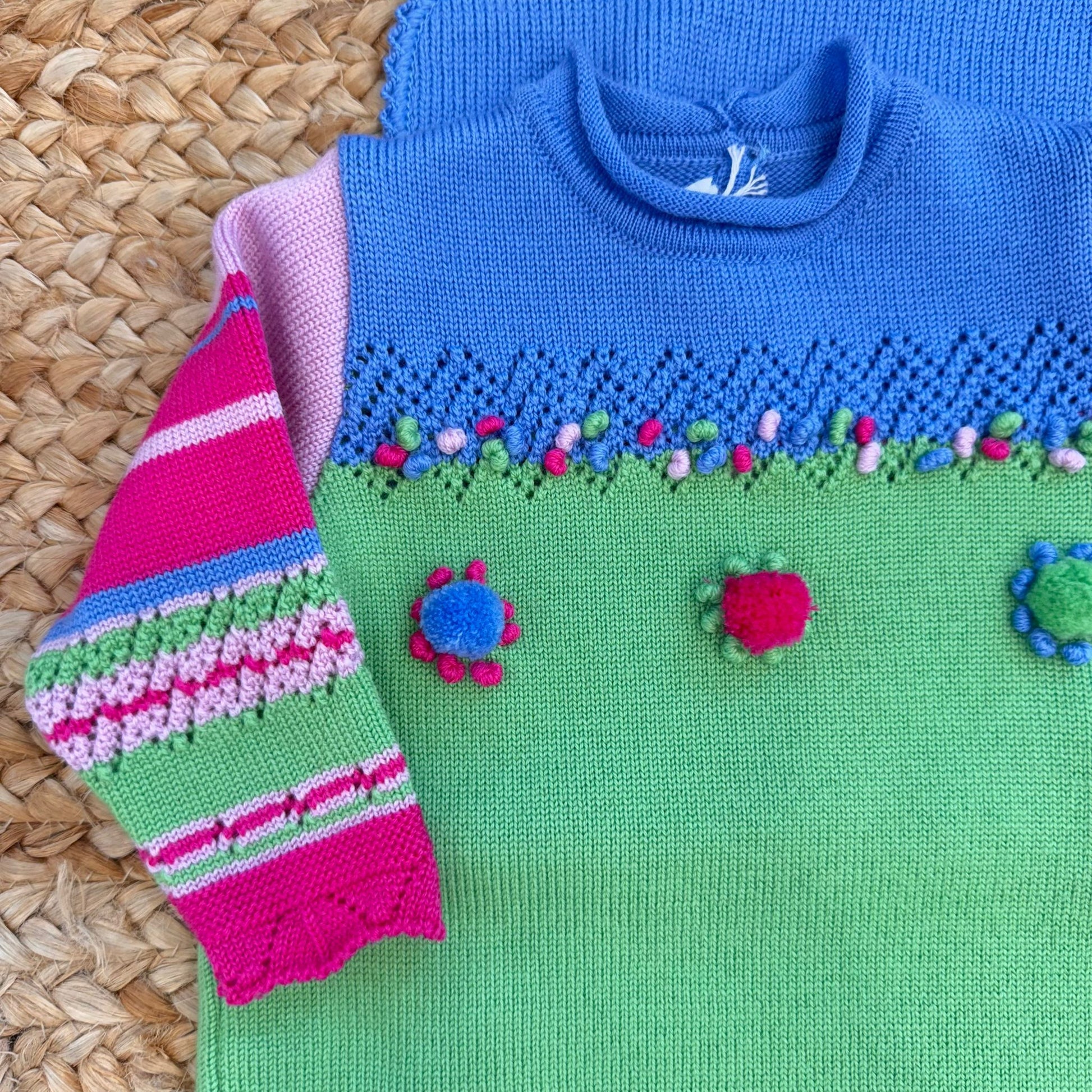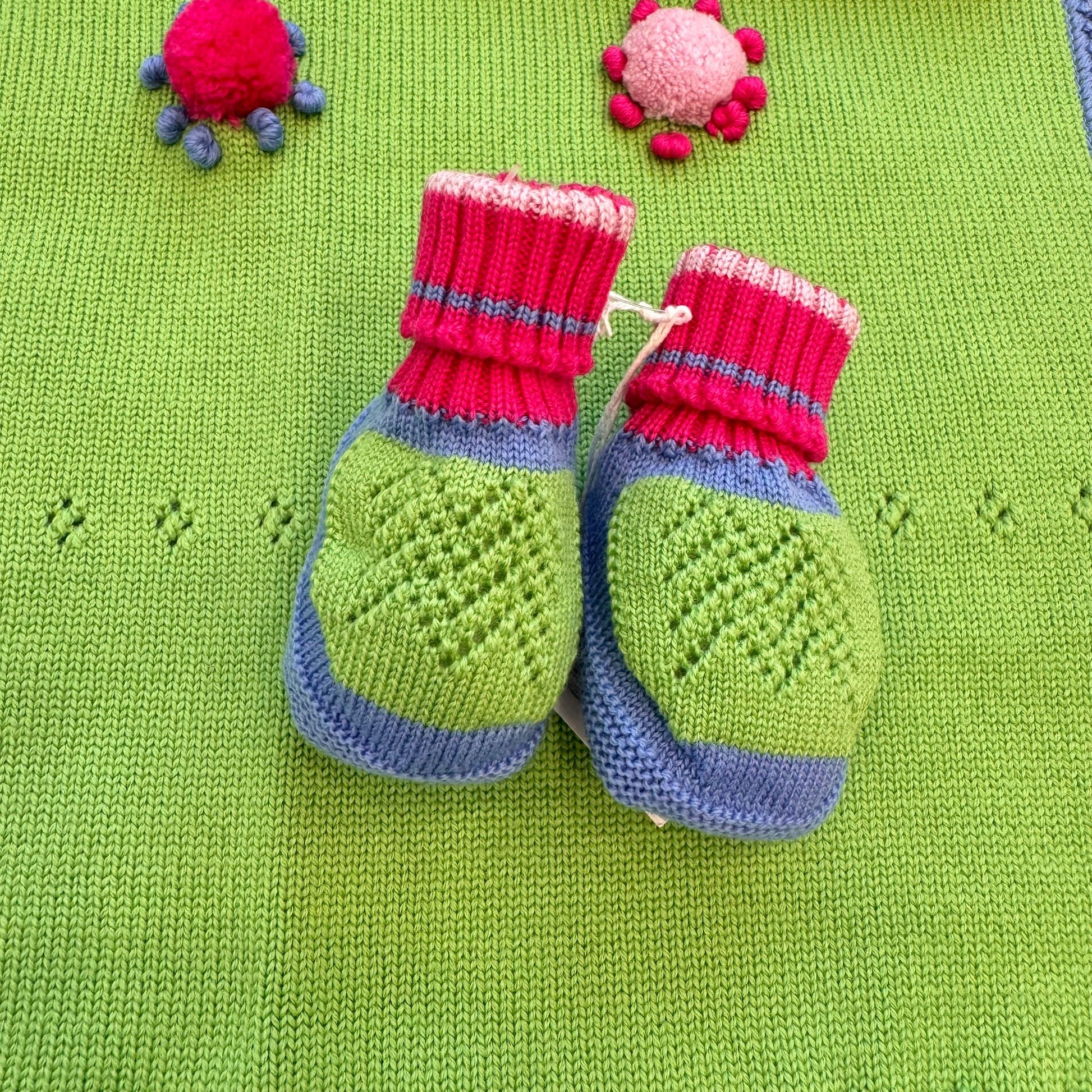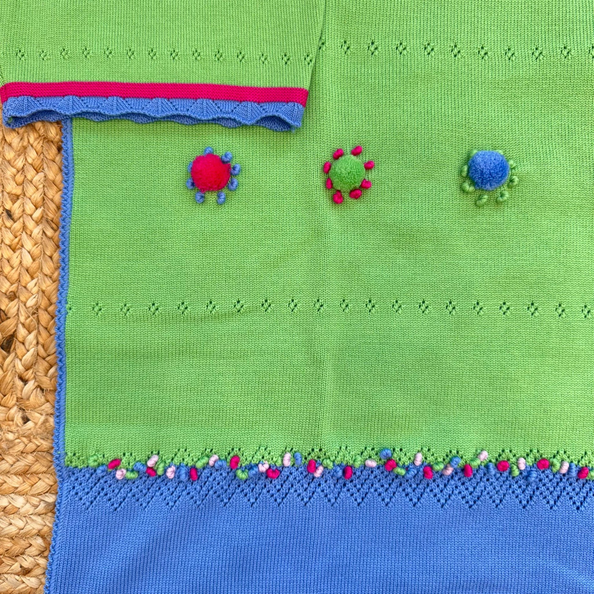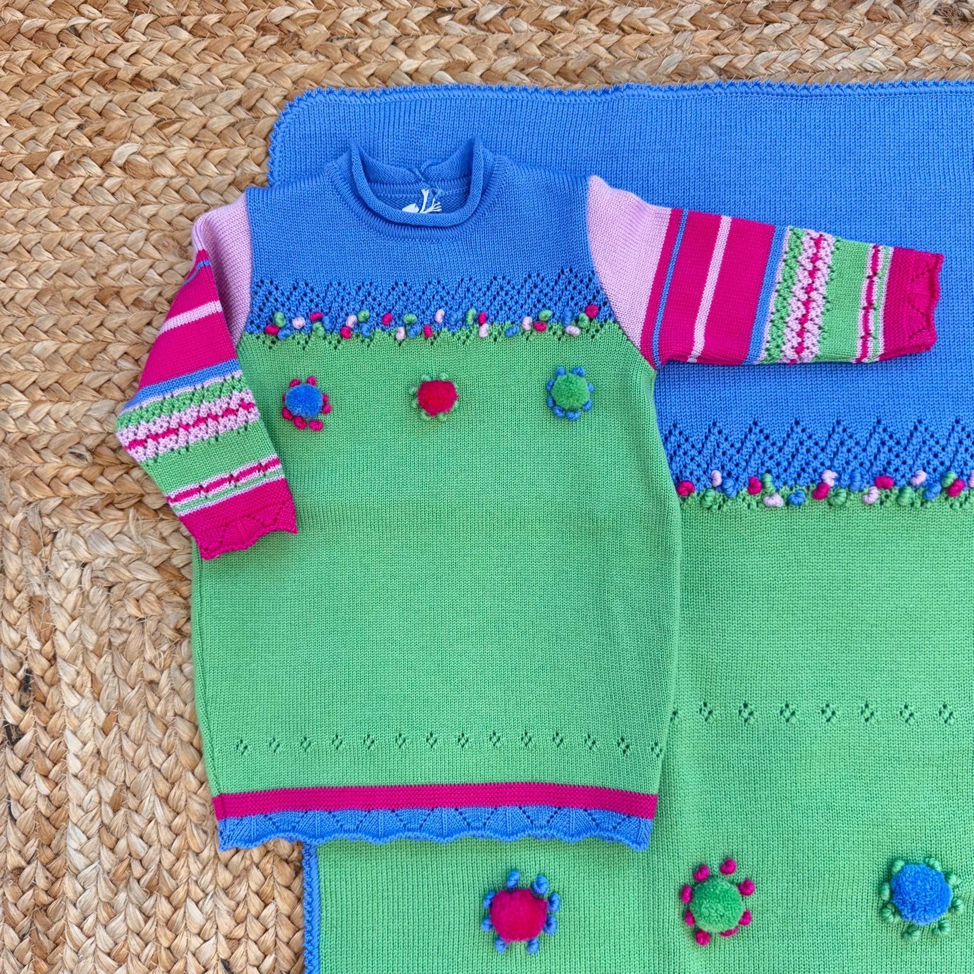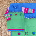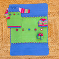 Set nascita pura lana verde e blu con dettagli colorati