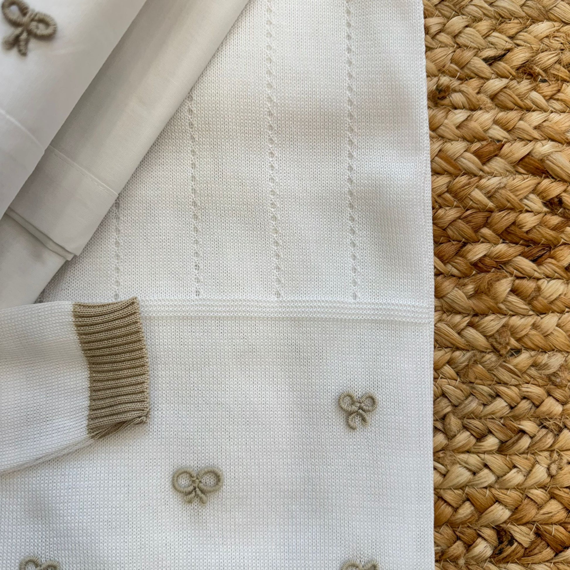 Uscita clinica unisex 100% cotone panna con fiocchi sabbia